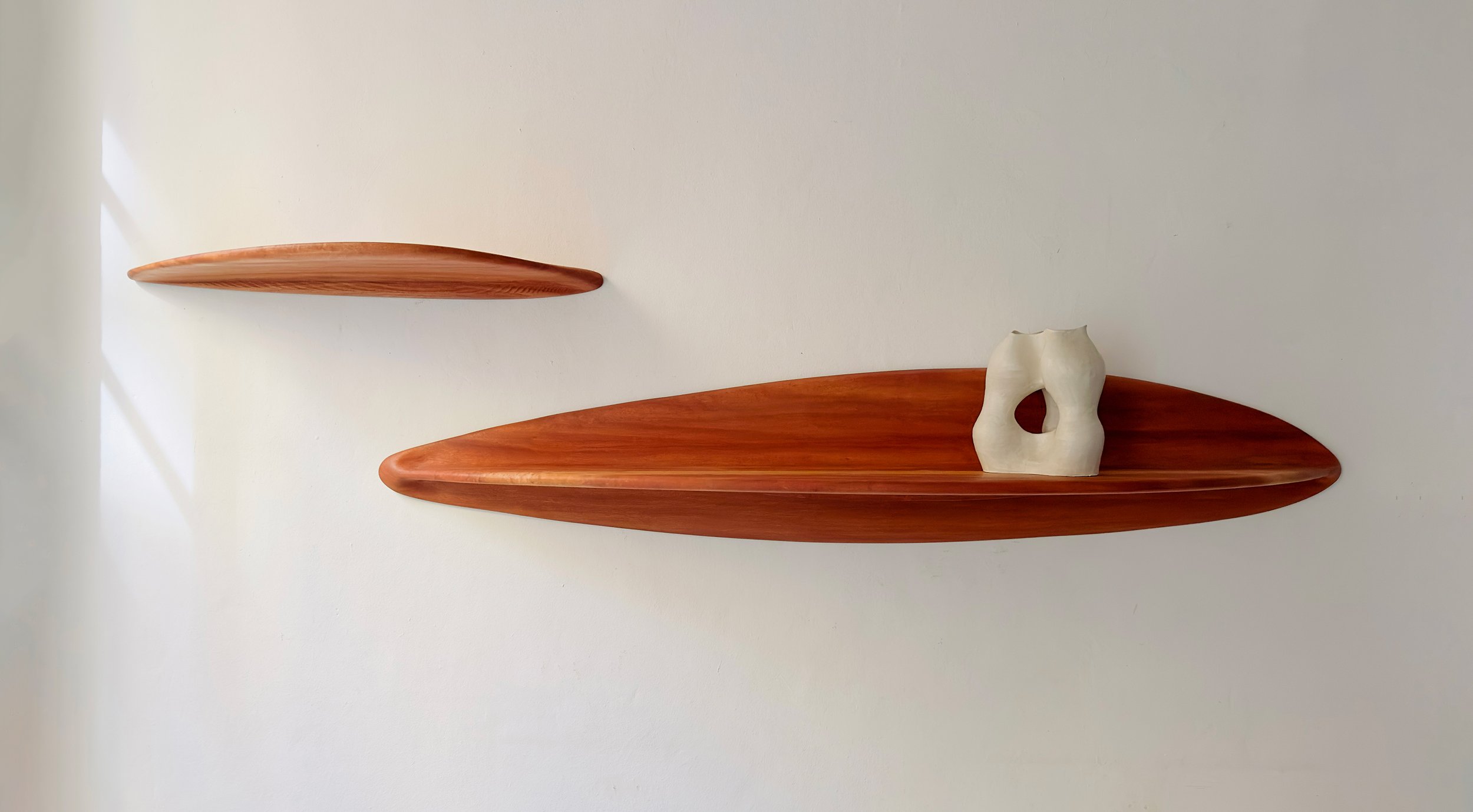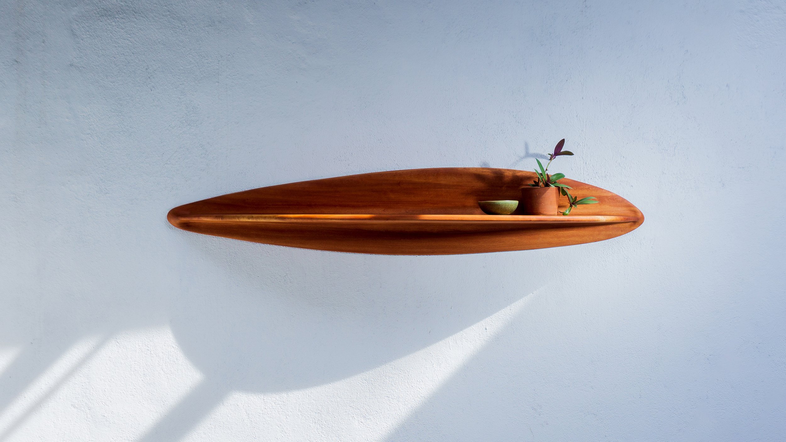 Mako is a series of customizable shelves that are robotically manufactured out of wood. The timber planks are first assembled to a near-net shape, to reduce material waste. The custom stock is then post processed by a 5-axis milling operation.